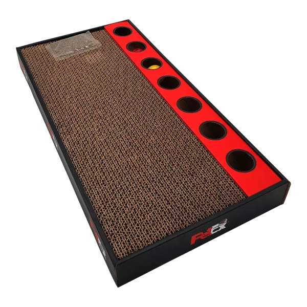 קרטון גירוד שניתן להפוך כאשר הצד העליון כבר עשה את שלו, מאובזר בכדורי משחק מרשרשים.
