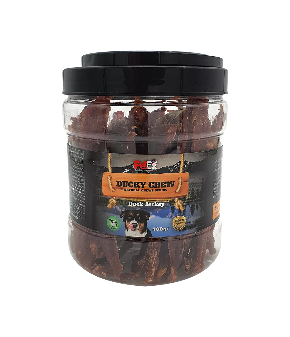 - חטיפים מיובשים מבשר ברווז מובחר באריזת חיסכון 400 גרם