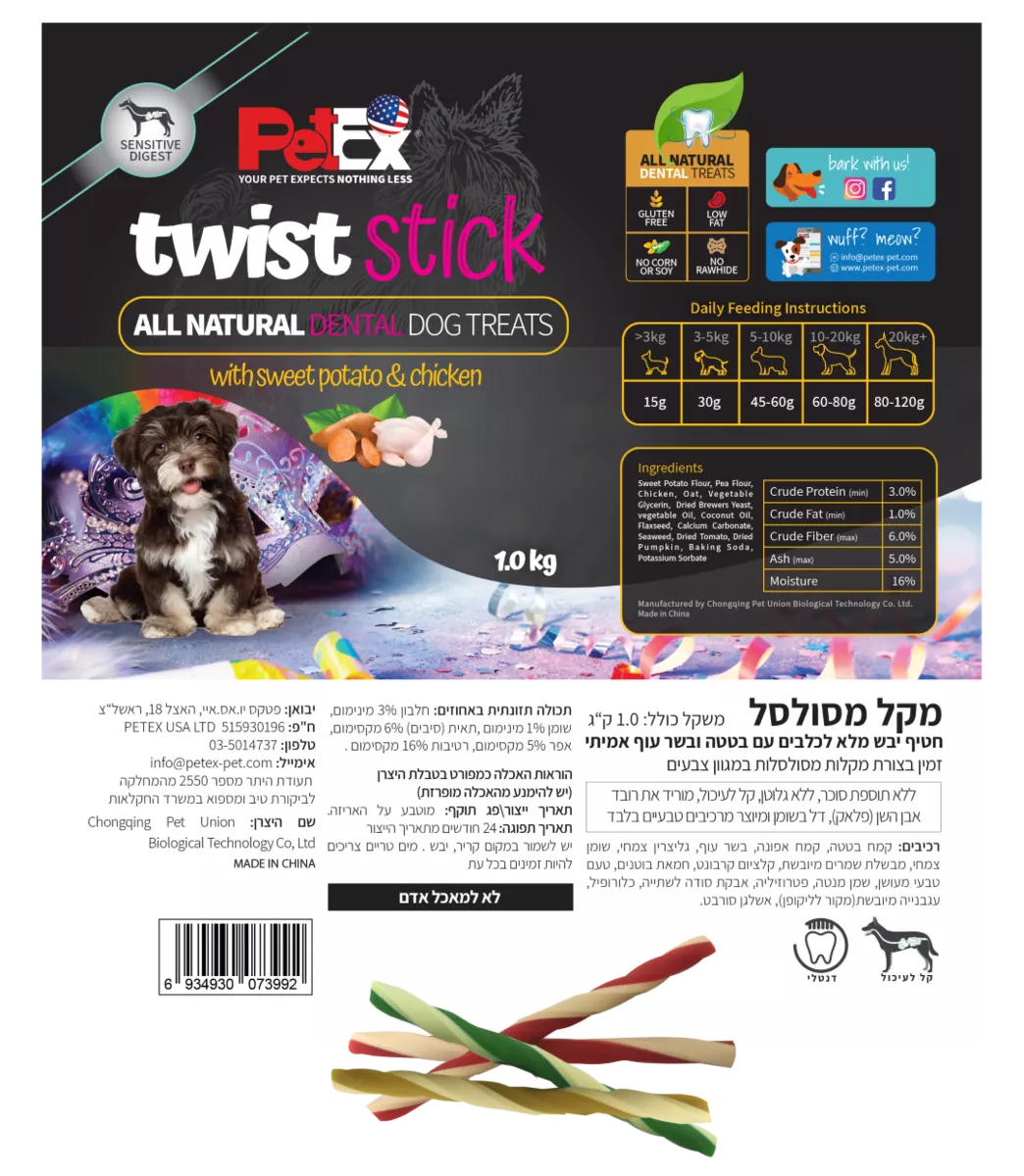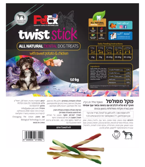 טויסט סטיקס חטיף דנטלי לכלב בצורת מקלות במשקל 1 ק”ג