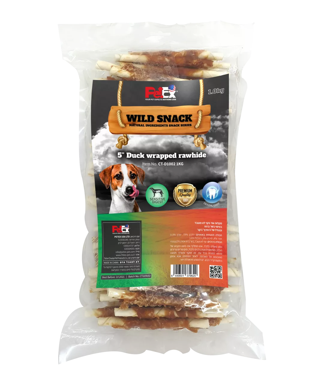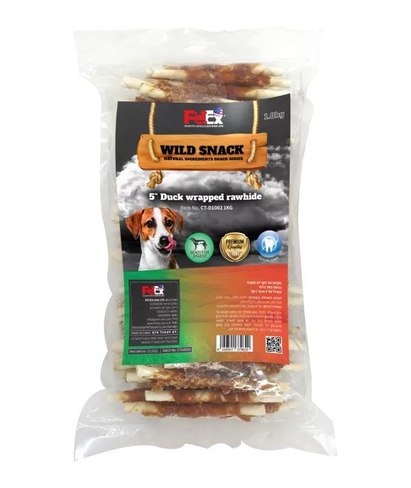 אריזת חיסכון של מקלות לעיסה מובחרים לכלב בציפוי בשר ברווז מיובש 1 ק”ג