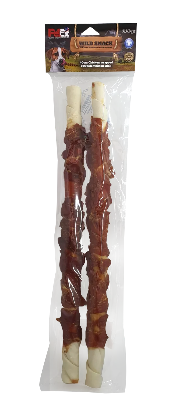 מקלות עור בקר לא מעובד עם בשר עוף בגודל 40 ס”מ משקל כולל 360 גרם