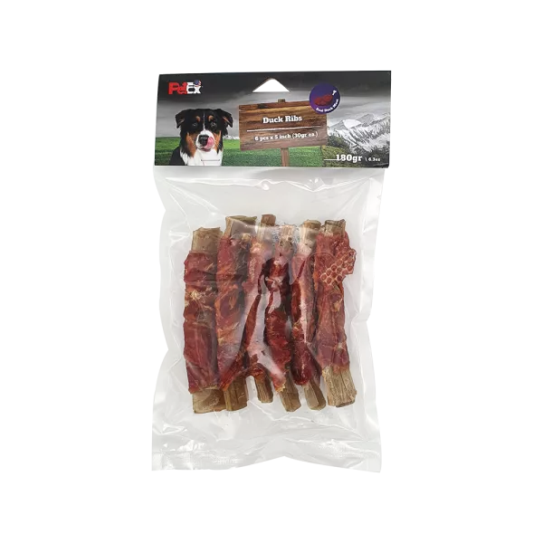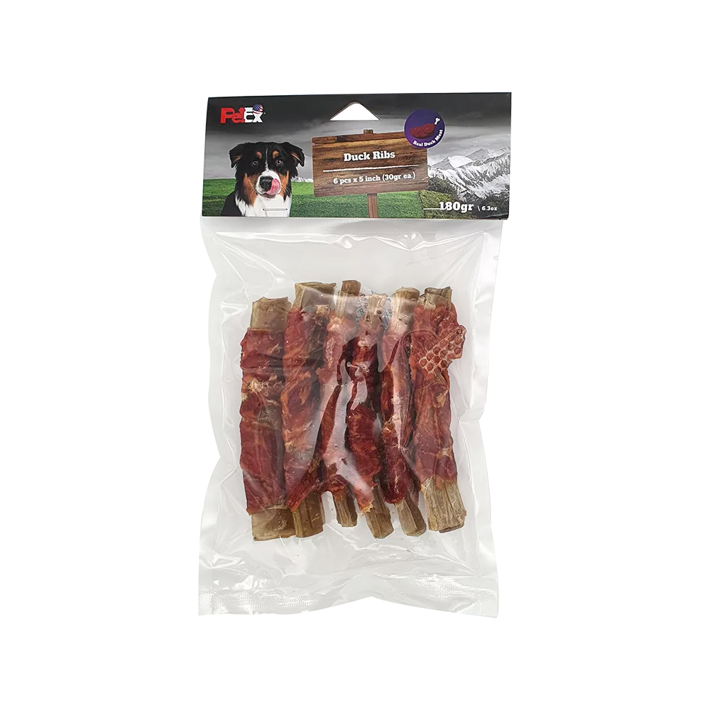 אריזת חיסכון של 6 עצמות לעיסה לכלב עטופות בבשר ברווז משובח גודל העצם 5 אינץ , משקל העצם כ 30 גרם