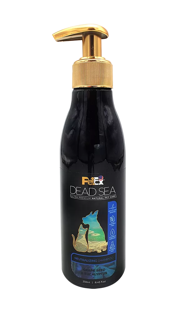 בקבוק לחיץ , שמפו לחתולים וכלבים עם מינרלים מים המלח ,תמצית שמן ענבים , שמן נבט החיטה ,שמן גזר, אקליפטוס ורוזמרין.