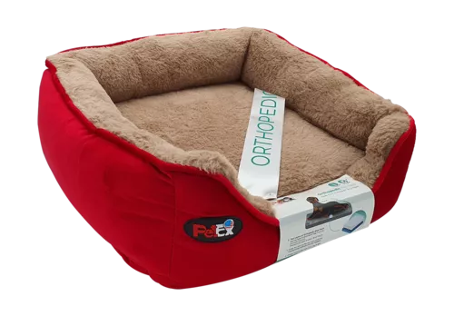 פטקס – מיטה אורטופדית לכלב בצבע אדום במידה 40x40x16 ס”מ