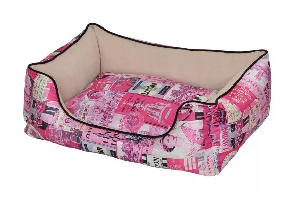 פטקס מיטה מאויירת לכלב (דגם Vintage) צבע ורוד במידה 60X50X22 ס”מ