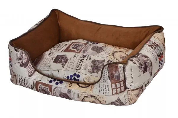 פטקס מיטה מאויירת לכלב (דגם Vintage) צבע חום במידה 90x70x24 ס”מ